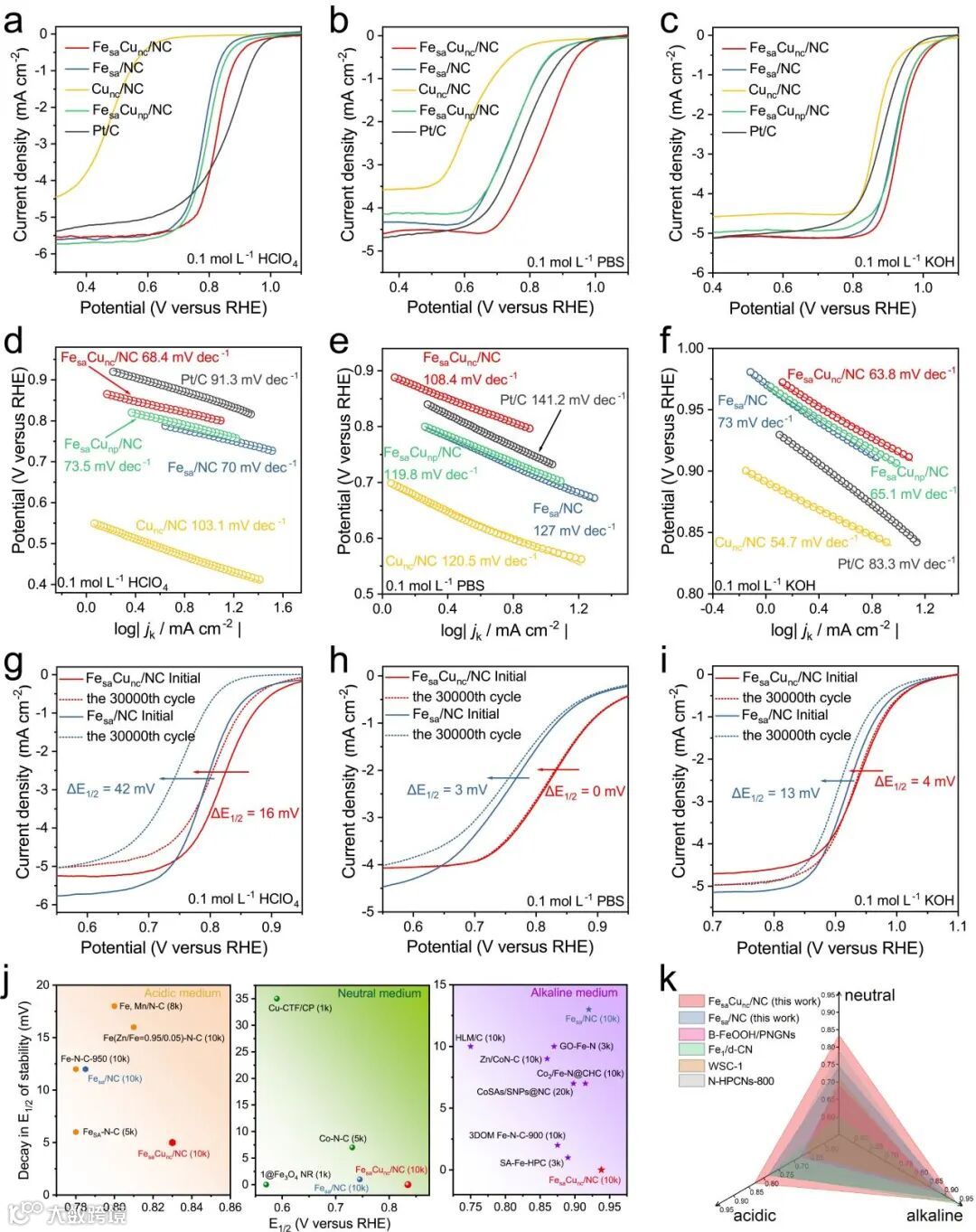 要点二:FesaCunc/NC优异的pH通用氧还原活性