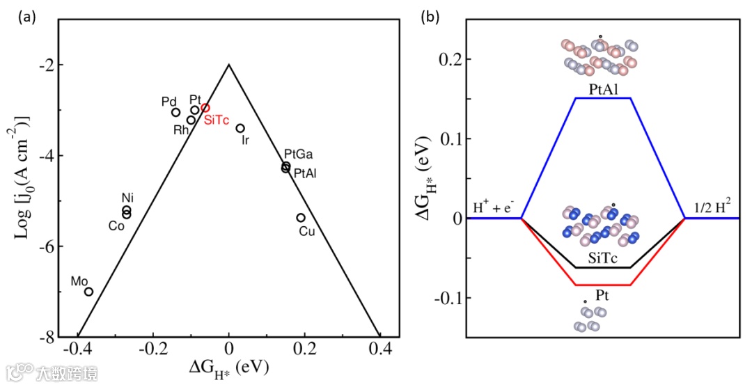 火山图和反应台阶图更加直观的展示了SiTc的析氢反应效率。相比于Pt,SiTc更接近于火山图顶点,是一个可替代Pt的潜在候选材料。