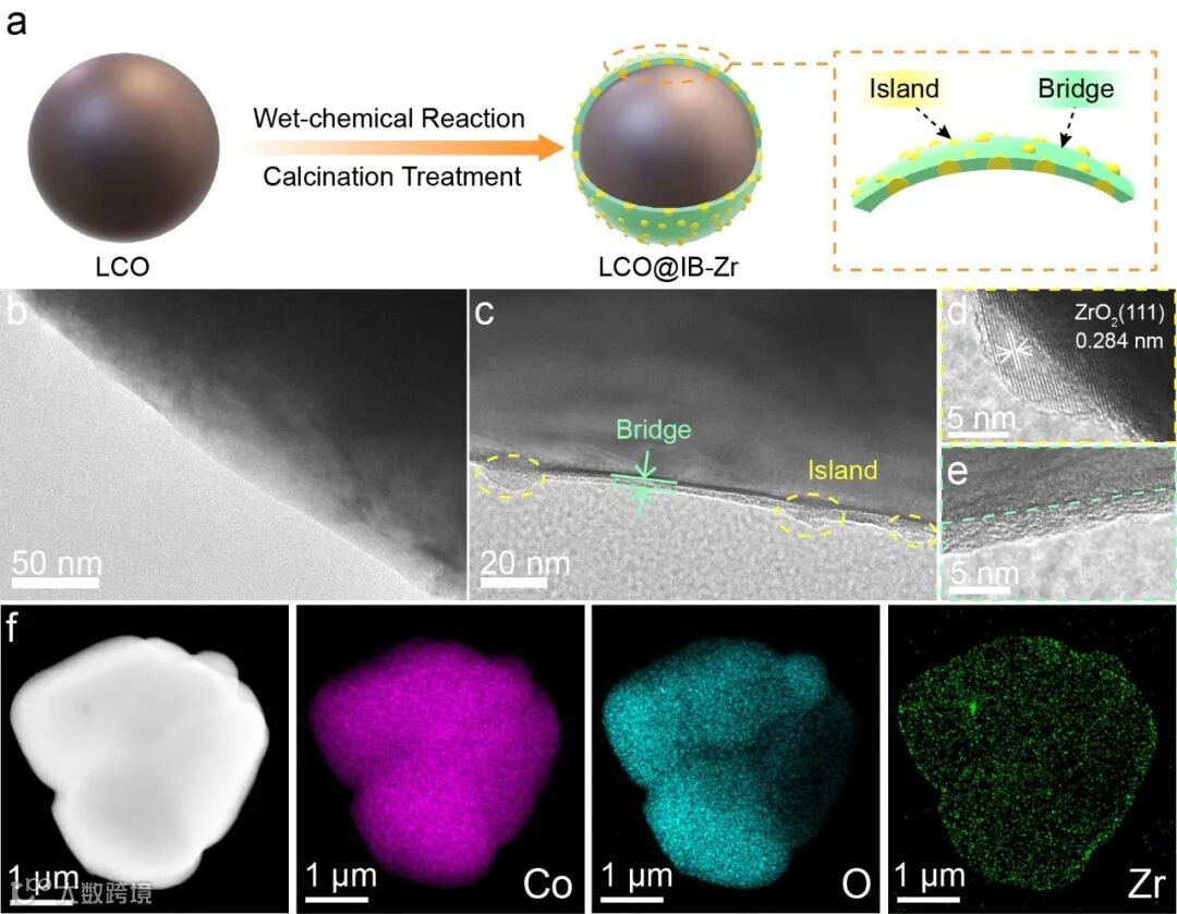 要点一:LCO表面构筑独特的“岛-桥”结构锆基包覆层