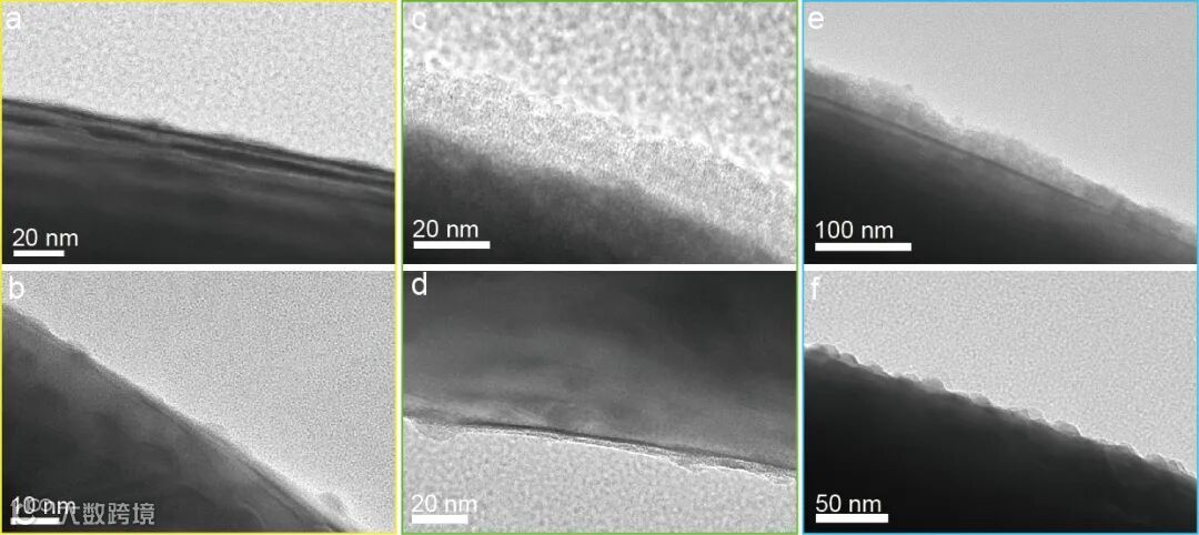 该工作研究了“岛-桥”结构包覆层的形成机理。实验表明,液相包覆过程中锆盐的用量和焙烧过程中温度的选择对“岛-桥”结构包覆层的形成至关重要。锆盐用量不同,通过液相包覆过程得到的锆基氢氧化物层中锆含量也不同,表现在包覆层厚度不同(图2)。因此在后续焙烧处理后,LCO表面得到的包覆层结构也不同。当锆盐用量太少时,形成的锆基氢氧化物包覆层厚度很薄,焙烧后在LCO表面形成的是不连续的“岛”状包覆层。锆盐用量过多时,锆基氢氧化物包覆层过厚,导致焙烧后形成密实、连续的包覆层。仅有在锆盐用量适中的情况下,才能够得到“岛-桥”结构包覆层。