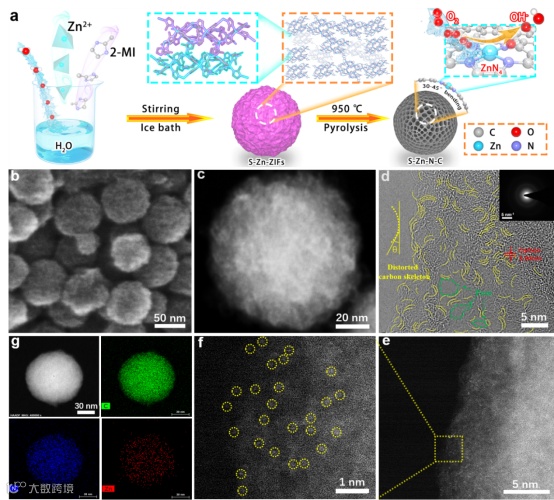 实现原子分散金属-氮-碳(M-N-C)位点的纳米级应变在技术上具有挑战性。几何应变是否能激活Zn原子的惰性3d104s2电子轨道,从而提高Zn原子的氧还原活性,目前还没有研究。重要的是,尽管碳基质结构与催化行为之间的相关性引起了研究人员的关注,但各种催化行为背后的结构-功能关系尚不清楚,特别是几何变形与催化活性之间的定量关系有待进一步探索。
