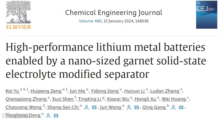 纳米LLZTO固态电解质改性隔膜助力高性能锂金属电池