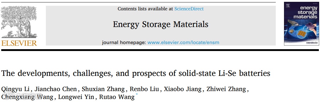 近日,山东大学王儒涛教授在国际知名期刊Energy Storage Materials上发表题为“The developments, challenges, and prospects of solid-state Li-Se batteries”的综述文章。该综述文章讨论了固态锂硒电池系统的工作原理、现存挑战及发展现状。同时,基于电解质厚度、活性材料负载等关键参数,指明了高能量密度固态锂硒电池的发展方向与实现途径。