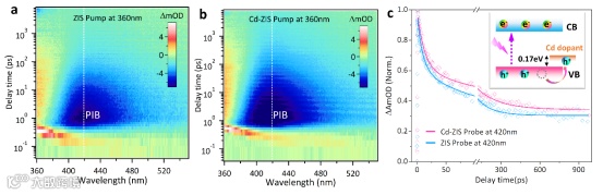 图7. ZnIn2S4和Cd-ZnIn2S4的光生载流子动力学机理表征。