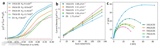 图6. ZnIn2S4和Cd-ZnIn2S4的光电化学性能表征。