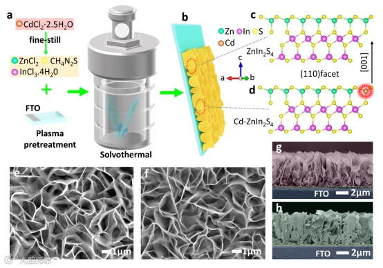 要点一:通过替位掺杂在二维ZnIn2S4基面引入Cd,构筑具有高度暴露Cd位点的Cd-ZnIn2S4纳米片阵列光阳极