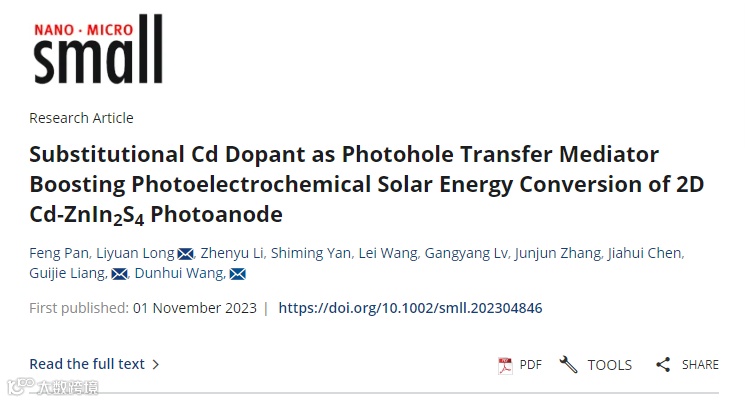 Substitutional Cd Dopant as Photohole Transfer Mediator Boosting Photoelectrochemical Solar Energy Conversion of 2D Cd-ZnIn2S4 Photoanode https://doi.org/10.1002/smll.202304846