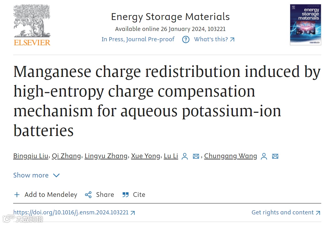 高熵电荷补偿机制诱导水系钾离子电池中锰电荷重新分配