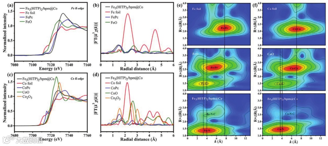 图2. Fe3(HITP)2/bpm@Co的XANES,EXAFS和WT-EXAFS。