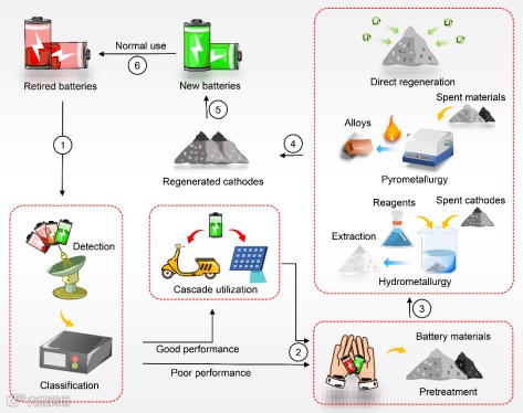 针对现有的电池回收技术,从LiFePO4正极材料的发展和降解机制方面对LiFePO4正极材料进行了综述,阐述了其回收利用的原因和必要性。此外,从实验室规模到工业化生产,对其回收方法的原理、特点、过程和挑战进行了彻底的回顾、比较和分析,旨在促进未来先进回收技术的大规模产业化,促进LiFePO4电池的可持续和高效的回收过程。这些工作表明,电池的退化降解推动了回收需求的形成。因此,有必要准确评估其降解机制,这是正极回收的前提。此外,有必要说明循环过程中产生的杂质和缺陷的影响。