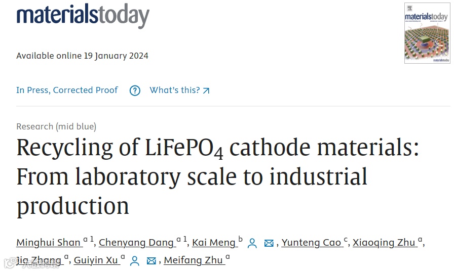 磷酸铁锂(LiFePO4)以其低成本、高安全性、高稳定性等优异性能,成为最受欢迎的正极材料之一。退役的LiFePO4电池数量正在大大增加,处理不当会造成环境污染和资源浪费。因此,从减少污染、节约资源和经济效益的角度来看,它们的回收利用势在必行。在这篇工作中,从湿法回收、火法回收和直接再生等方面总结了LiFePO4正极在实验室研究和工业实践中的回收利用进展,并对其回收产业化生产进行了全面、系统地分析。