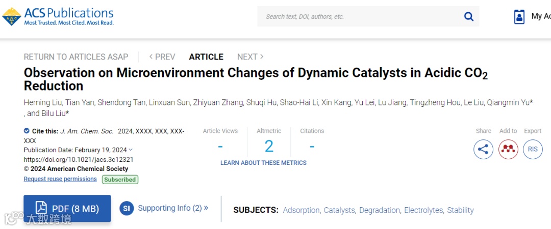 酸性CO2还原反应中动态催化剂微环境变化观察