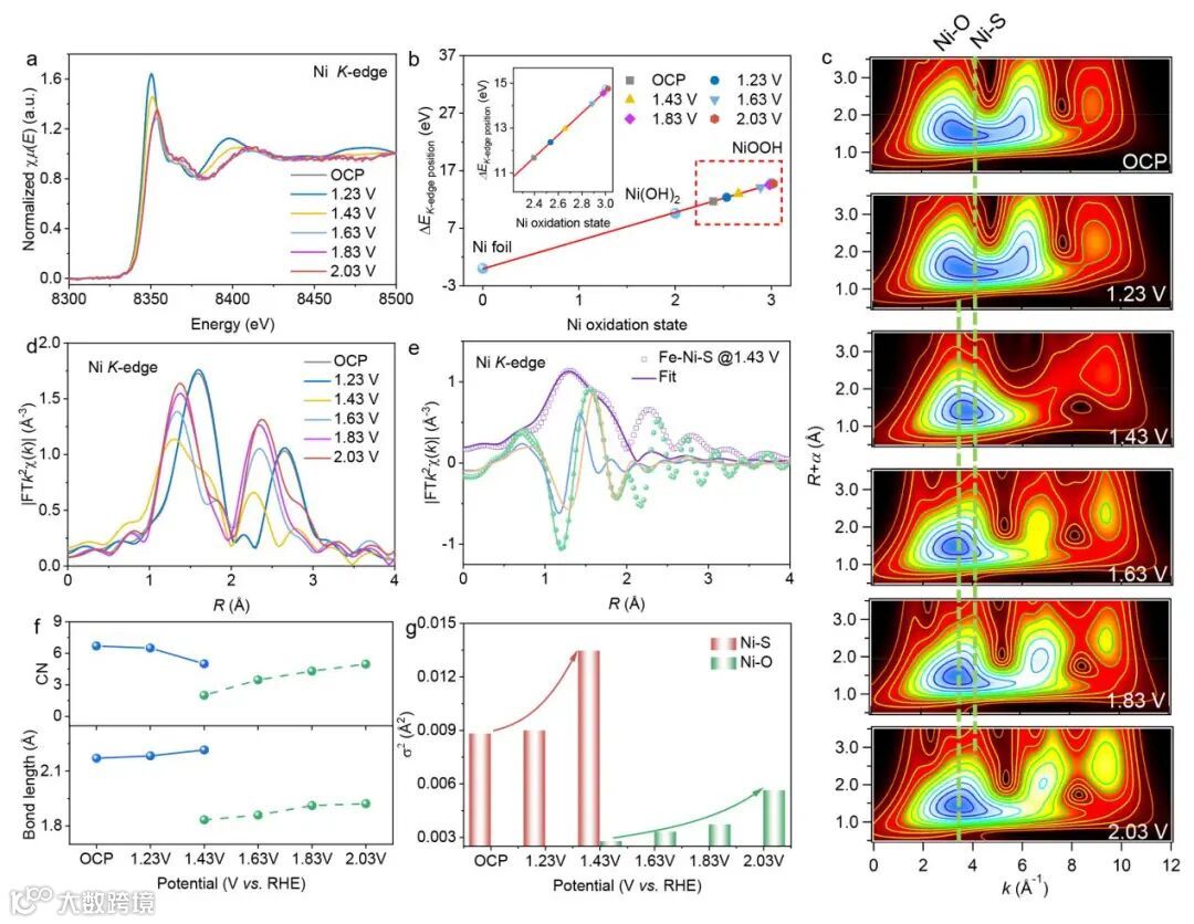 小波变换分析确认了催化剂在结构演变之后衍生得到的结构为(羟基)氢氧化物。研究团队对衍生得到的(羟基)氢氧化物进行EXFAS拟合,得出了详细的结构信息。