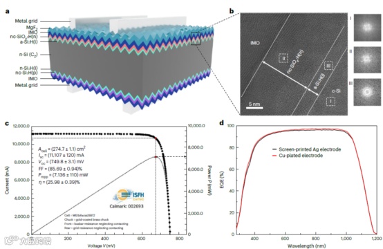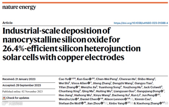 工业兼容的纳米氧化硅窗口层和铜电镀助力实现26.4%效率的硅异质结太阳电池