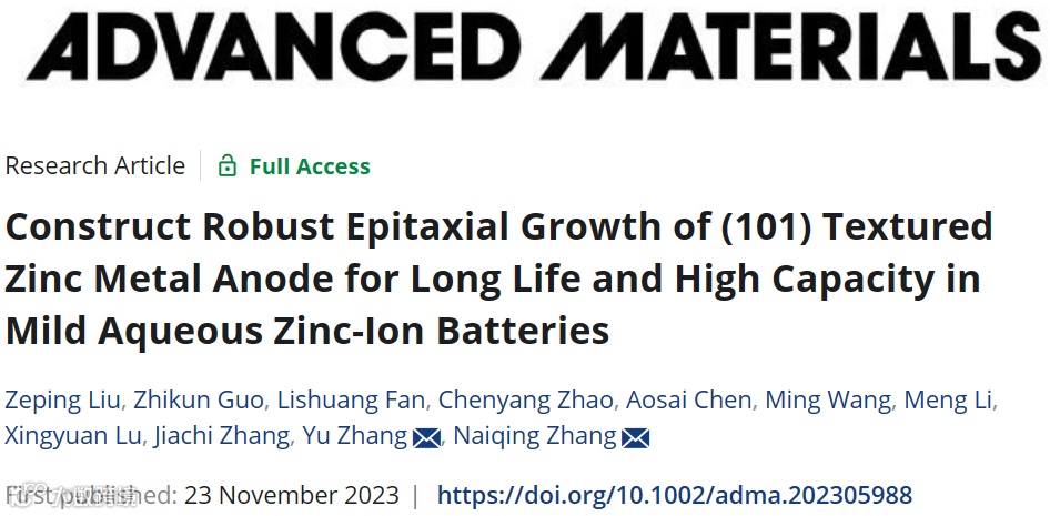 “Construct robust epitaxial growth of (101) textured zinc metal anode for long life and high capacity in mild aqueous zinc-ion batteries”