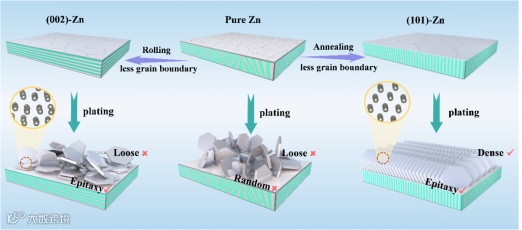 近日,来自哈尔滨工业大学的张乃庆教授团队,在国际知名期刊Advanced Materials上发表题为“Construct robust epitaxial growth of (101) textured zinc metal anode for long life and high capacity in mild aqueous zinc-ion batteries”的研究文章。该文章揭示了(002)晶面在特定条件下的不足,并提出了一种致密垂直外延生长的“锌”策略。本文为未来的研究提供了方向,有助于加速金属锌晶面工程的研究及实际应用。