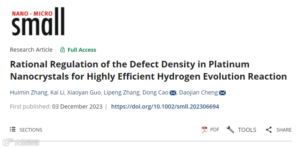Zhang, H., Li, K., Guo, X., Zhang, L., Cao, D., Cheng, D., Rational Regulation of the Defect Density in Platinum Nanocrystals for Highly Efficient Hydrogen Evolution Reaction. Small 2023, 2306694.