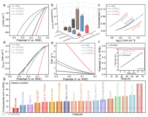 图4. 1.0 M KOH溶液中的HER性能。