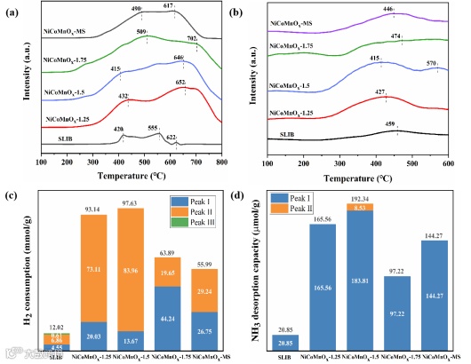 图3. 催化剂的H2-TPR与NH3-TPD表征