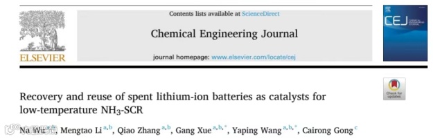 要点一:提出将废旧三元锂离子电池回收再利用合成低温NH3-SCR催化剂的新方法。
