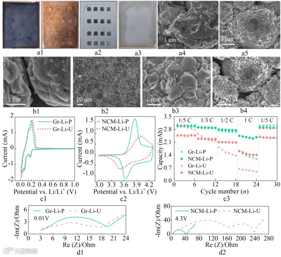图 4 NCM-U在循环老化后的拆解组件光学照片、半电池测试结果。