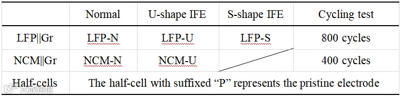 表1 本工作中软包电池及半电池命名规则