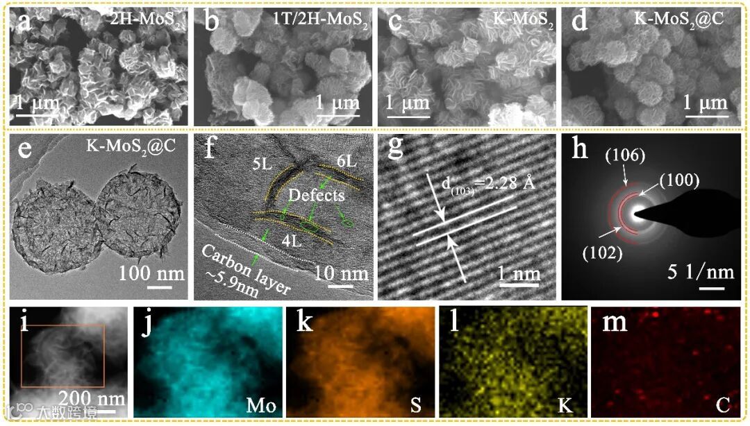 要点一:K+预插入实现K-MoS2@C的层间距调控和相结构诱导