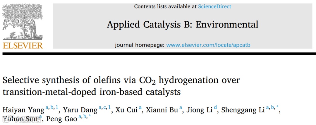 Haiyan Yang et al. Selective synthesis of olefins via CO2 hydrogenation over transition-metal-doped iron-based catalysts, Applied Catalysis B: Environmental, 321, 2023, 122050