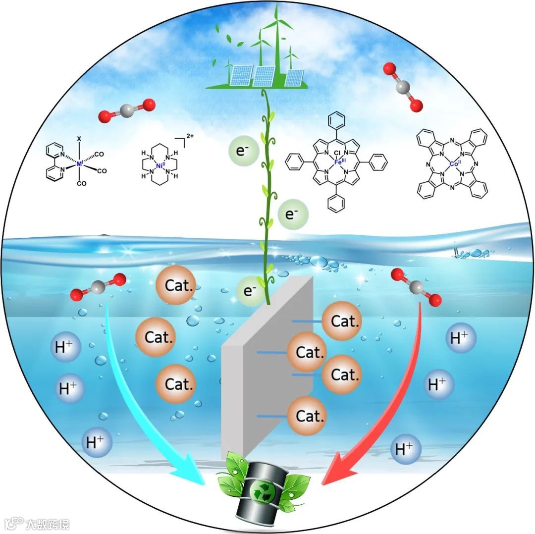 通过光及可再生电催化还原, 以克服转化中的能源问题, 开辟利用太阳能光解水制氢与转化CO2相结合的新途径, 即可再生能源储存和CO2转化的可持续发展模式。