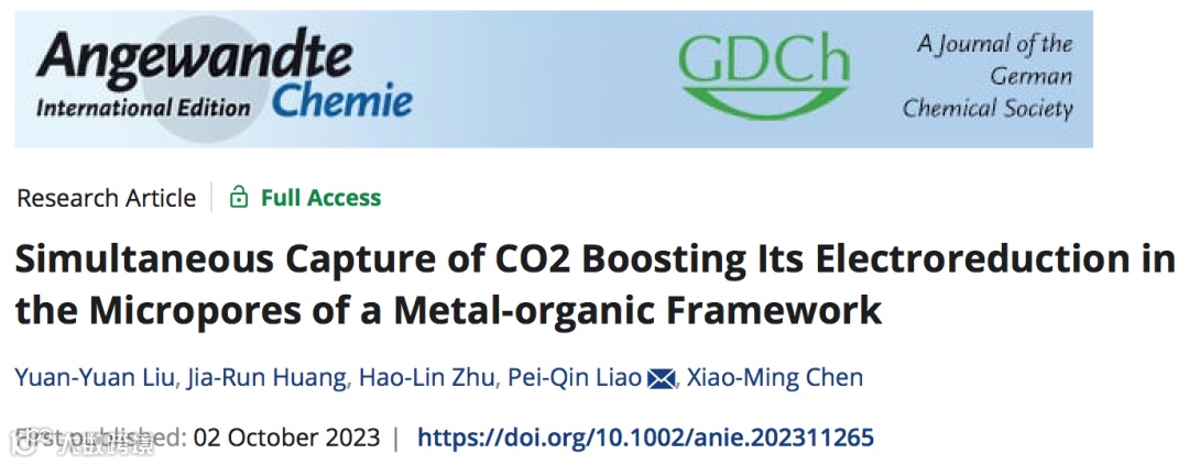 近日,来自中山大学的廖培钦教授和陈小明教授,在国际知名期刊Angew. Chem. Int. Ed.上发表题为“Simultaneous Capture of CO2 Boosting Its Electroreduction in the Micropores of a Metal–organic Framework”的观点文章(入选VIP和封面论文)。该观点文章将在烟道气中具有二氧化碳捕集能力和进行电化学二氧化碳还原反应(eCO2RR)的活性位点整合到金属有机框架中,一方面利用其微孔从模拟烟道气中高效捕集二氧化碳(CO2:N2 = 15:85,298 K),另一方面通过eCO2RR催化吸附的CO2转化为CO。