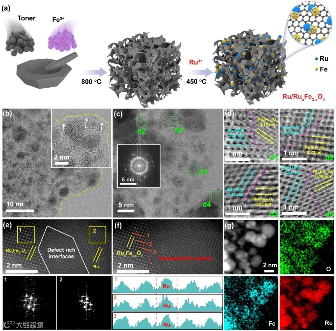 图2. Ru/RuxFe3-xO4的结构表征测试。