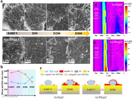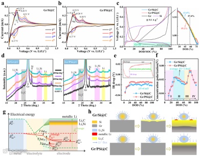 图1. 硅/石墨复合负极中的竞争式锂化机制的表征和示意图