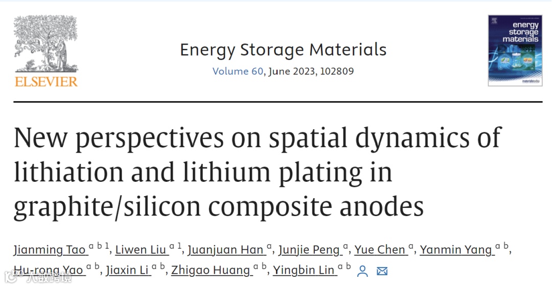 近日,来自福建师范大学的林应斌教授团队在国际知名期刊Energy Storage Materials上发表题为“New Perspectives on Spatial Dynamics of Lithiation and Lithium Plating in Graphite/Silicon Composite Anodes”的研究论文。论文系统探究了石墨/硅负极的共锂化和析锂问题,揭示了竞争式锂化对于SEI膜成膜、锂离子空间动力学和析锂优先位点的影响机制。