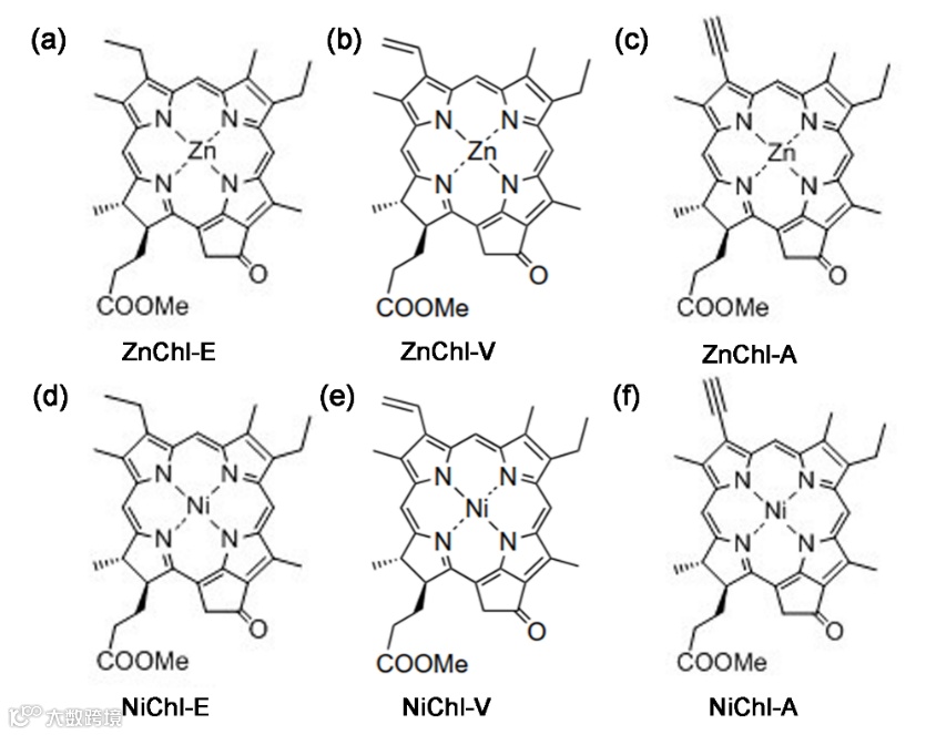 如图2,作者合成了六种叶绿素衍生物分子,根据中心金属元素的种类(Zn和Ni)和C3位置不饱和键的种类(碳碳单键、双键和三键)分别记为ZnChl-E, ZnChl-V, ZnChl-A, NiChl-E, NiChl-V和NiChl-A。将该6种叶绿素溶解到把Bu4NPF6/CH2Cl2电解液中用动电位法处理,所得伏安曲线如图3。