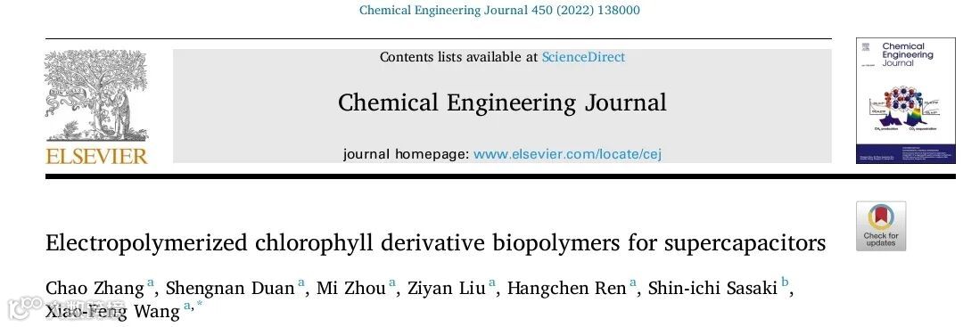 基于此,来自吉林大学的王晓峰教授在国际知名期刊Chemical Engineering Journal上发表题为“Electropolymerized chlorophyll derivative biopolymers for supercapacitors”的文章。