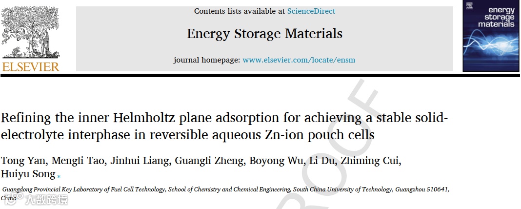 可逆锌离子软包电池中改善内亥姆霍兹平面吸附以实现稳定的固态电解质界面