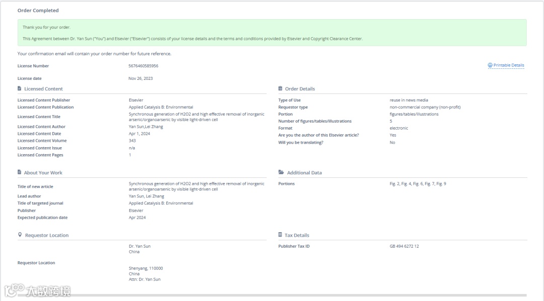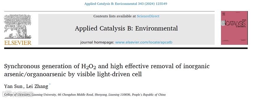 参考文献:Y.Sun, L. Zhang, Synchronous generation of H2O2 and high effective removal of inorganicarsenic/organoarsenic by visible light-driven cell, Appl. Catal. B Environ,2024, 343: 123549.