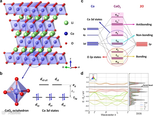 图1:LCO基本的晶体结构和电子结构
