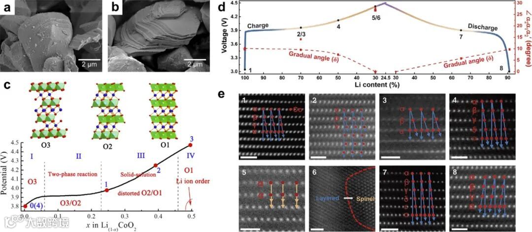 在充放电的脱嵌Li过程中,LCO会会经历多尺度和多维度的结构变化,涉及体相和表面的晶体结构与电子结构。这些结构变化将导致不稳定因素,从而导致结构破坏和电化学性能衰减。