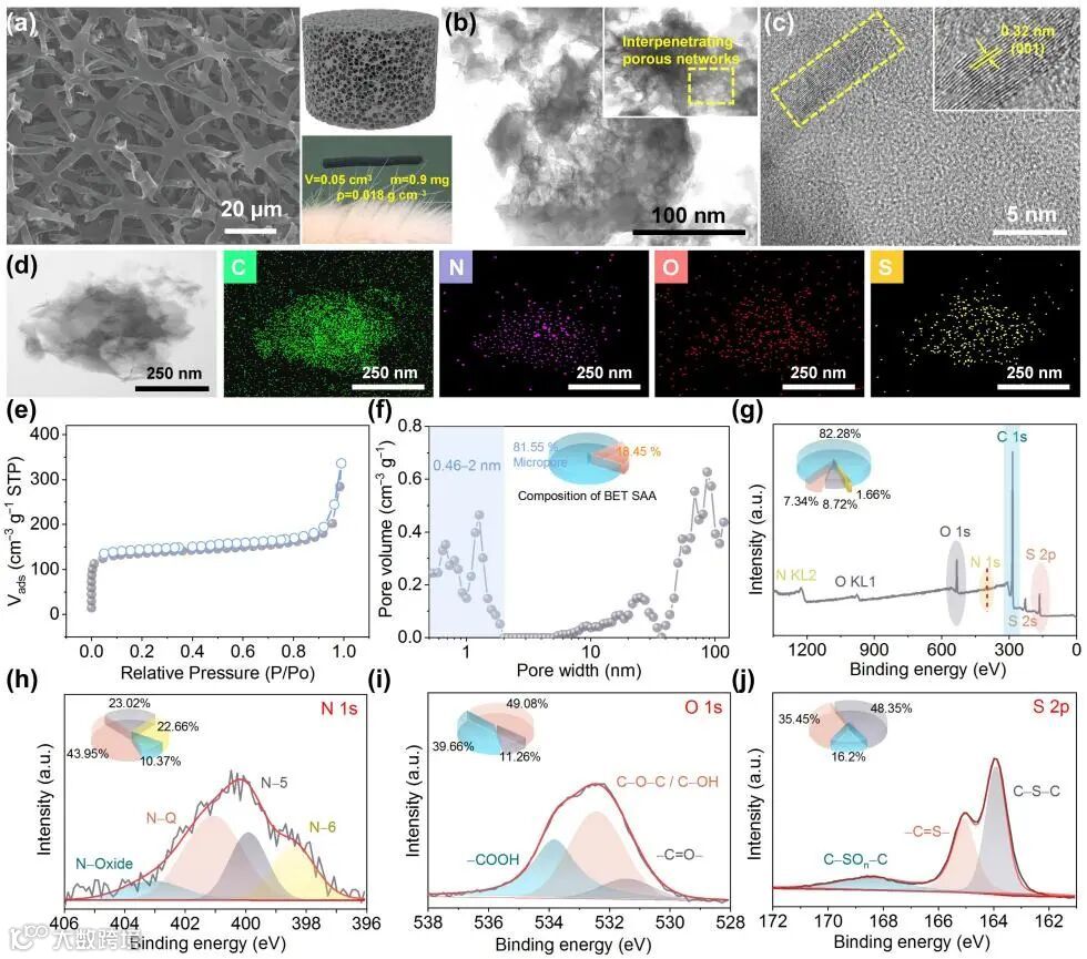 图4. 秸秆内髓衍生3D多孔泡沫碳材料(EBC-800)的结构表征。
