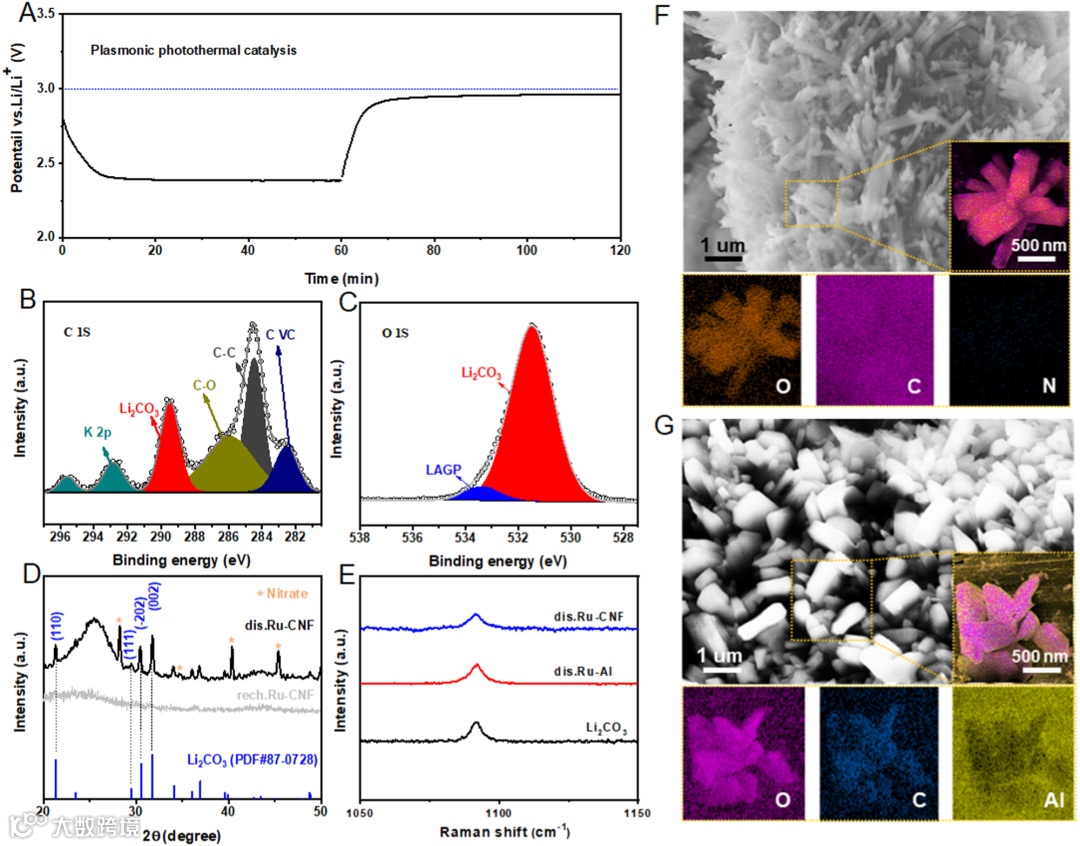 图1利用固态Li-CO2电池在放电过程中原位构建的等离激元Ru/Li2CO3基异质结构。