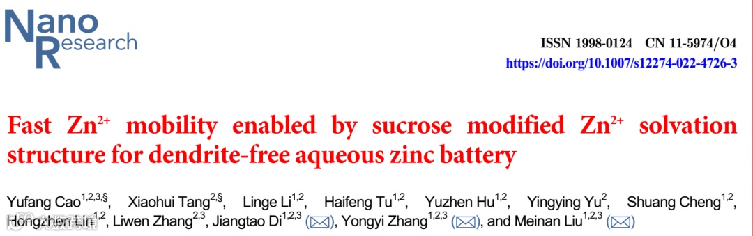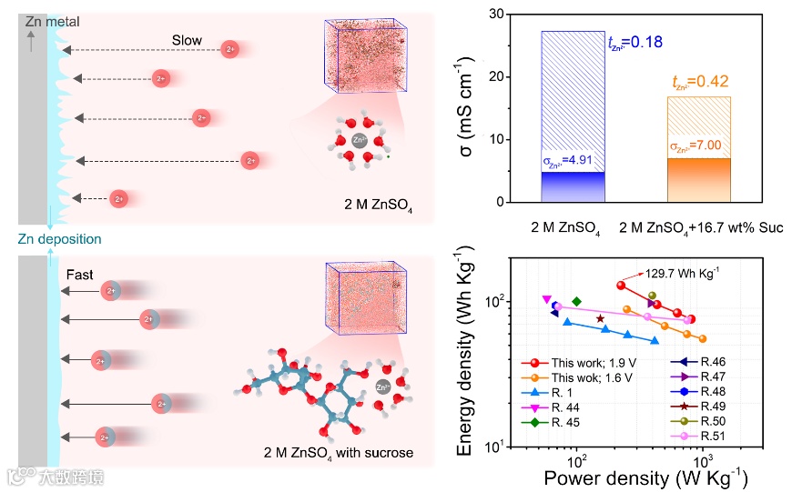 蔗糖改性的锌离子溶剂化结构助力锌离子快速输运及无枝晶
