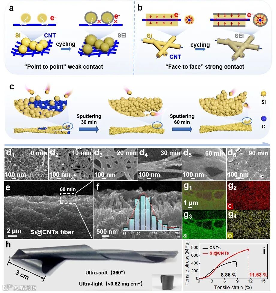 图1. 具有强“面对面”接触的Si@CNTs纤维膜的制备。