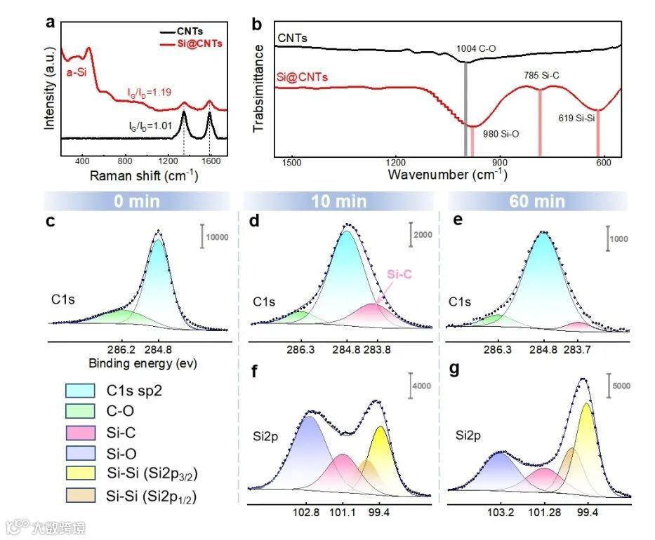 图2. Si@CNTs纤维膜的结构和化学状态分析。