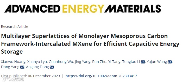 用于高效电容储能的单层介孔碳框架插层的MXene叠层超晶格