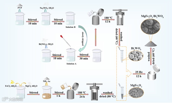 图1. MgFe2O4/Bi2WO6复合材料的详细合成流程图。