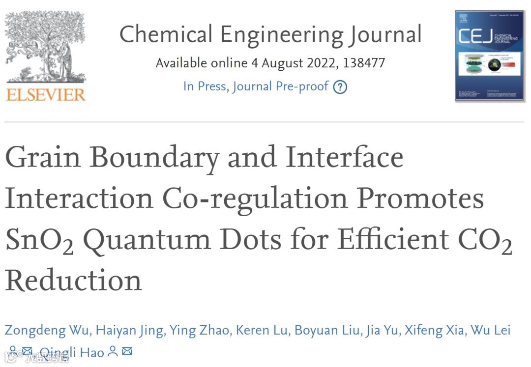 基于此,来自南京理工大学的郝青丽教授和雷武教授合作,在国际知名期刊Chemical Engineering Journal上发表题为“Grain Boundary and Interface Interaction Co-regulation Promotes SnO2 Quantum Dots for Efficient CO2 Reduction”的研究论文。该文章同时采用载体界面的电子结构调控以及构建丰富的SnO2晶面边界两种策略对其催化性能进行调控并取得了高效的催化性能。