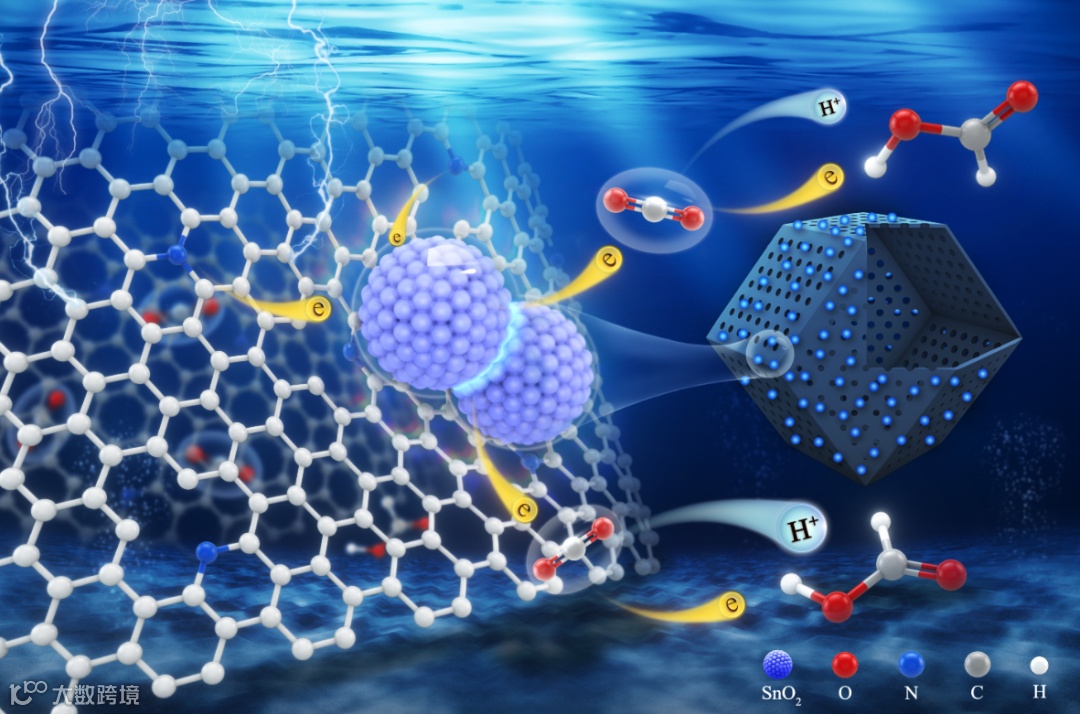 图1. 富晶面边界的SnO2/NC电极电催化还原CO2的示意图