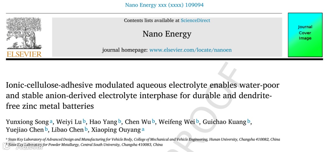 离子型纤维素粘合剂调制电解液贫水促进阴离子衍生电解质界面,实现耐久无枝晶锌金属电池
