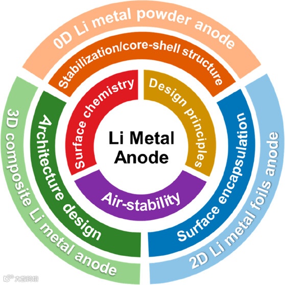 图1. 空气稳定锂金属负极:从不同维度表面化学特征到设计原理。